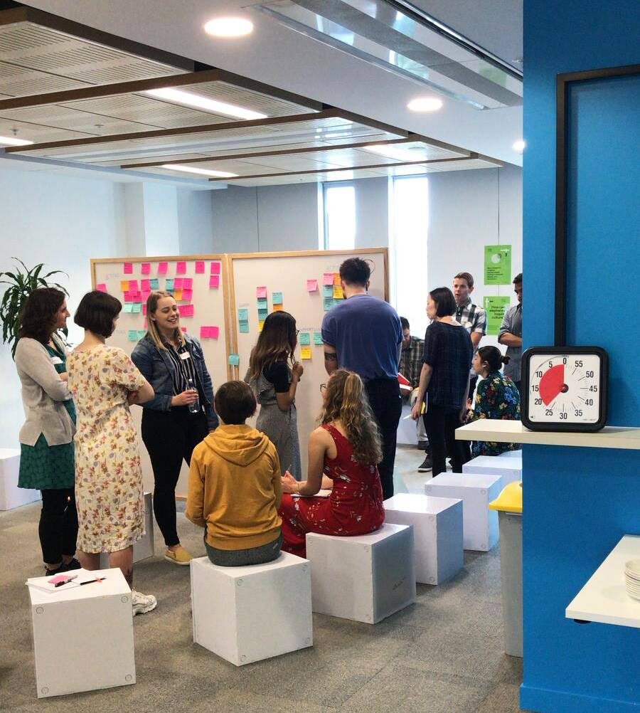 - La majorité des workshops collaboratifs ayant un enjeu de production de contenu et de création d’un jalon mémorable. Ce set-up combine la praticité des murs Velleda pour structurer les espaces de travail avec le potentiel des cubes pour construire un environnement unique et hors normes.