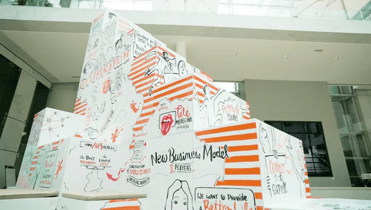 La majorité des workshops collaboratifs ayant un enjeu de production de contenu et de création d’un jalon mémorable. Ce set-up combine la praticité des murs Velleda pour structurer les espaces de travail avec le potentiel des cubes pour construire un environnement unique et hors normes.